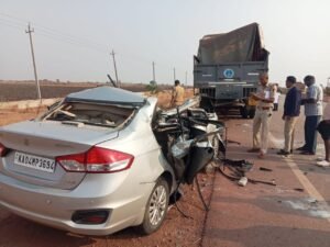 ಕರ್ನಾಟಕದಲ್ಲಿ ಮತ್ತೊಮ್ಮೆ ದುರ್ಘಟನೆಯೊಂದು ಸಂಭವಿಸಿದ್ದು, ಪೊಲೀಸ್ ಇಲಾಖೆಗೂ ಹಾಗೂ ಸಾರ್ವಜನಿಕರಿಗೂ ತೀವ್ರ ಆಘಾತ ಉಂಟುಮಾಡಿದೆ. ಚಿತ್ರದುರ್ಗ ಜಿಲ್ಲೆಯ ಚಳ್ಳಕೆರೆ ತಾಲ್ಲೂಕಿನ ಹೆಗ್ಗೆರೆ ಗ್ರಾಮದ ಸಮೀಪದ ರಾಷ್ಟ್ರೀಯ ಹೆದ್ದಾರಿ 150A ರಲ್ಲಿ ಕಾರು ಮತ್ತು ಲಾರಿಯ ನಡುವೆ ನಡೆದ ಭೀಕರ ಅಪಘಾತದಲ್ಲಿ ಮೂವರು ರಿಸರ್ವ್ ಸಬ್ ಇನ್ಸ್ಪೆಕ್ಟರ್ಗಳು (RSI) ಸ್ಥಳದಲ್ಲೇ ಮೃತಪಟ್ಟಿದ್ದಾರೆ. ಇದೇ ವೇಳೆ ಇಬ್ಬರು ಸಬ್ ಇನ್ಸ್ಪೆಕ್ಟರ್ಗಳು ಗಂಭೀರವಾಗಿ ಗಾಯಗೊಂಡಿದ್ದು, ಅವರನ್ನು ಆಸ್ಪತ್ರೆಗೆ ದಾಖಲಿಸಿ ಚಿಕಿತ್ಸೆ ನೀಡಲಾಗುತ್ತಿದೆ.